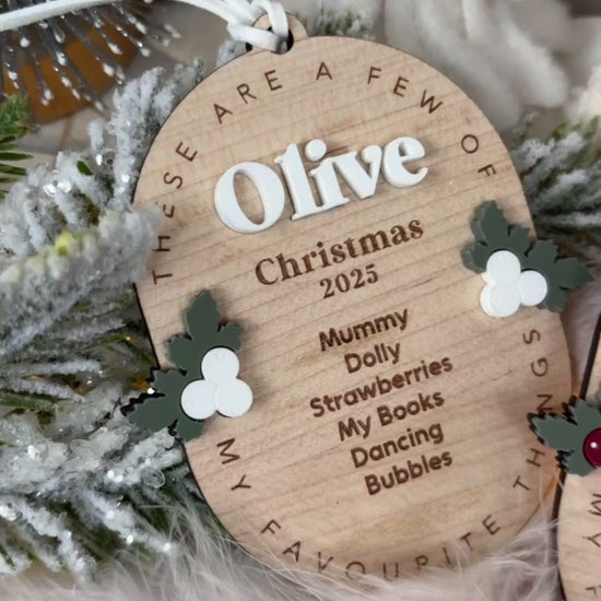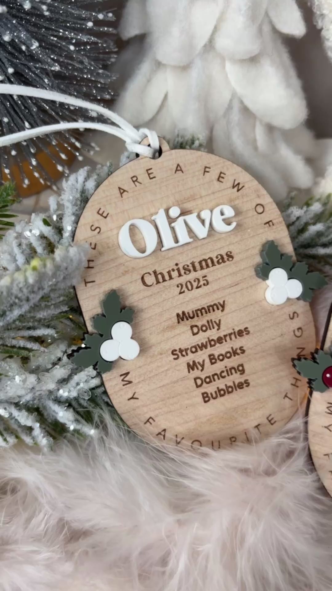 To personalise your order please let me know the name for your bauble in the personalisation and the year it’s for and list 6-7 of baby’s favourite things.