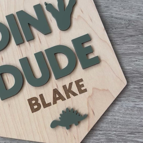 Dino Dude Personalised Plaque and Name Flag