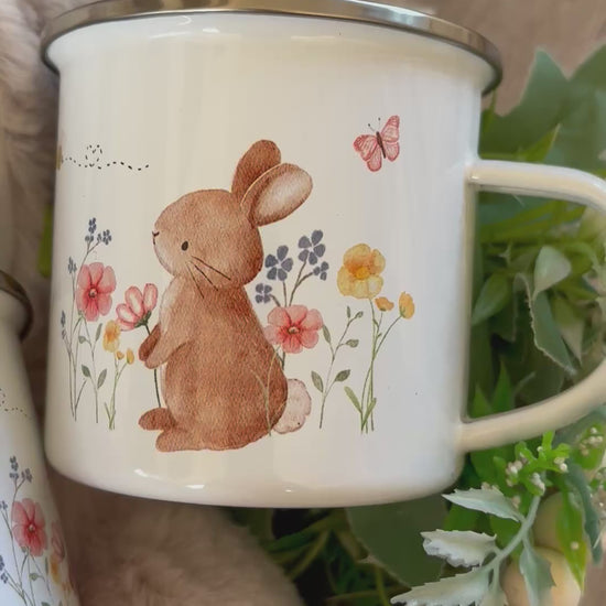 Each mug is printed and personalised with my cute bunny design and your child’s name. The mugs are metal so are great for kids.