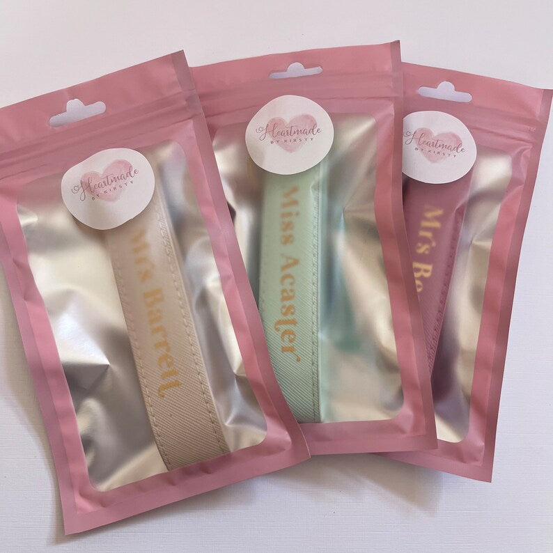 Your wristlet will be packaged in a pink self seal bag and branded sticker ready to gift
